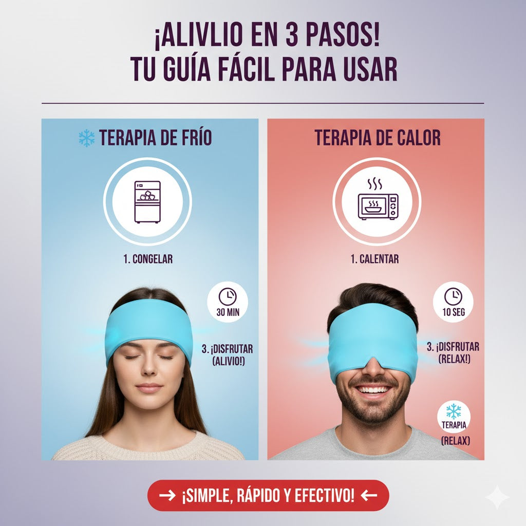 Esta gorra de terapia es la solución inmediata al sufrimiento. Usa Frío para parar la migraña o Calor para relajar la tensión.