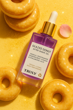 After Shave Glazed Donut Truly calma, hidrata y protege tu piel mientras deja un aroma dulce irresistible que eleva tu presencia y seguridad.