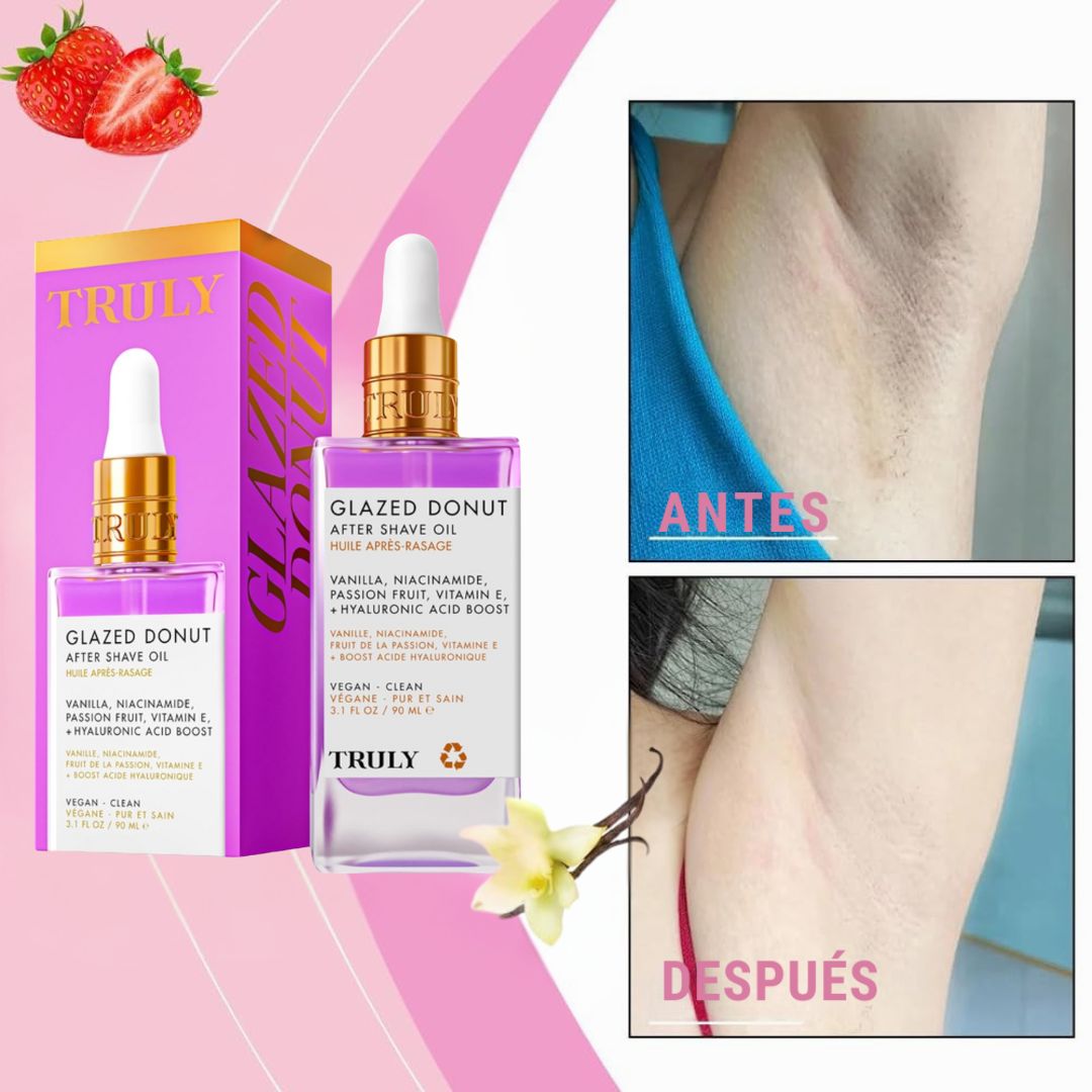 Transforma tu piel desde la primera aplicación. Glazed Donut Truly reduce la irritación, hidrata y realza la suavidad natural de tu piel dejando una sensación fresca, sedosa y femenina después del afeitado.
